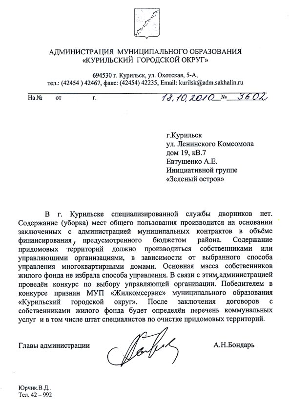 В начале октября мэру послали письмецо следующего содержания: