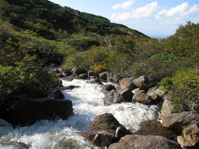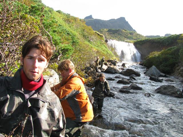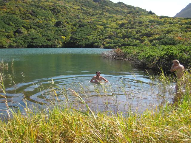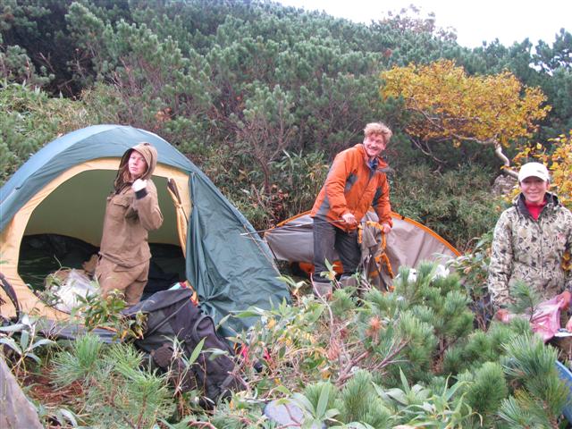 Но, либо до него не дошли, либо его там уже нету. Попался пенный водопадик, как будто кто-то порошка стирального насыпал. Пузыри по 30 см диаметром! На обратном пути ничего не предвещало дождя. Но он все таки пошел. А у нас некоторые вещи на улице сохли. Пришлось совершить небольшой марш-бросок под дождичком. Саня даже пожалел, что у него не было автомата... Вымокшие вещи сушили на костре, т.к. на следующий день планировалось возвращение в цивилизацию и высушить их никак не получится. Утром, в четверг, позавтракали, собрались и снова в путь, но уже домой. Нам предстояло добраться до перевала, откуда берет начало ручей Трущебный, впадающий в реку Благодатная возле Горячих Ключей. По прямой это 10 км. А шли практически весь световой день.